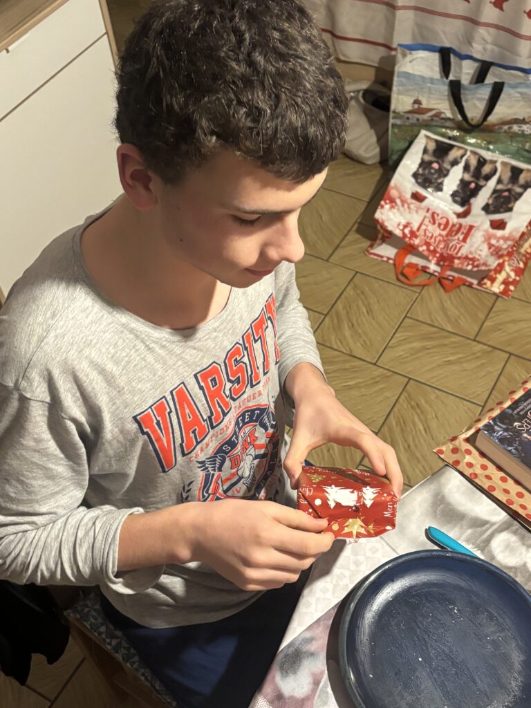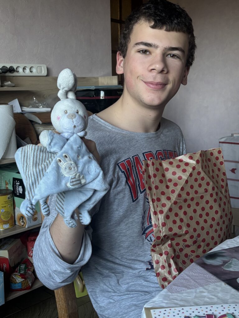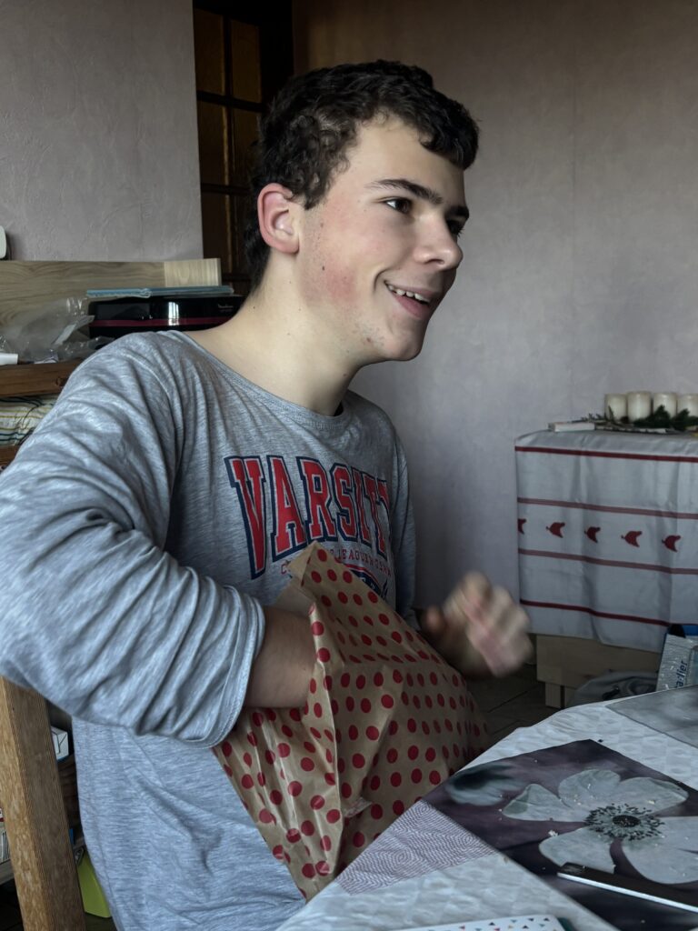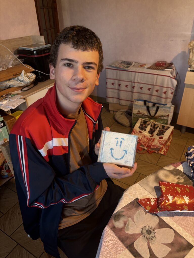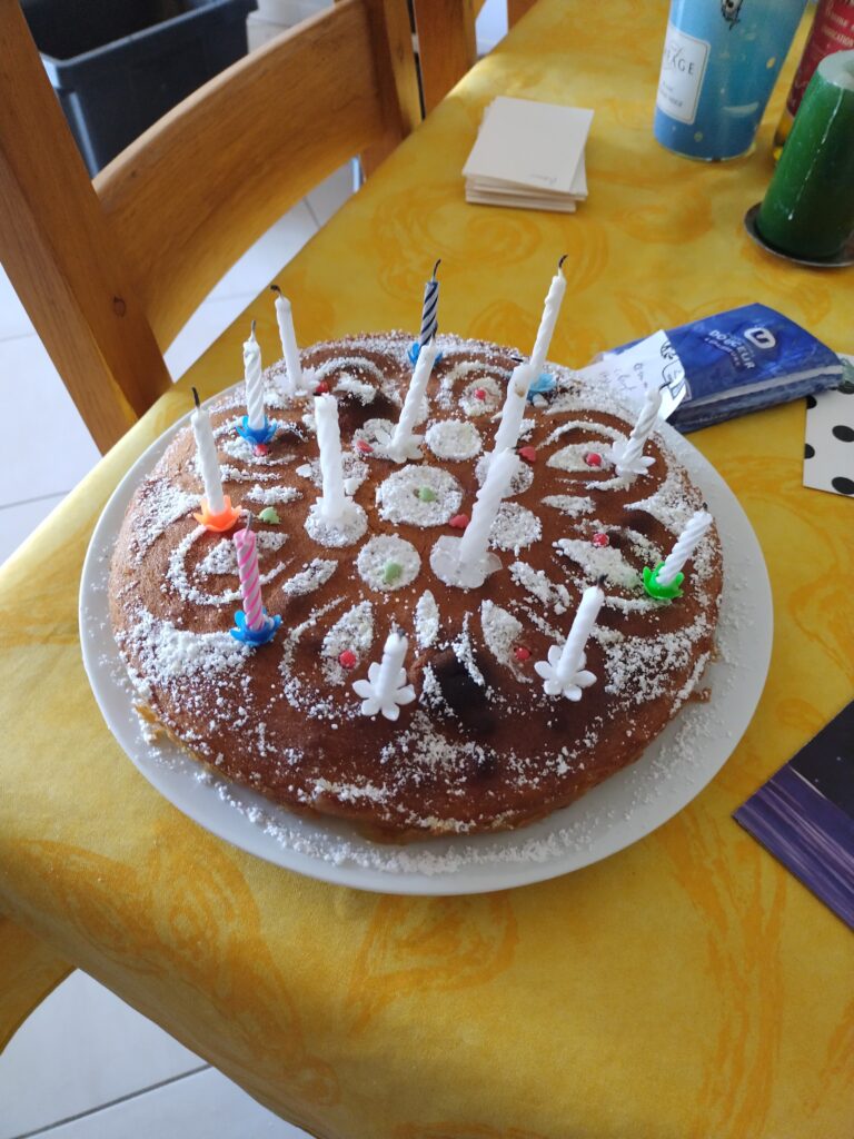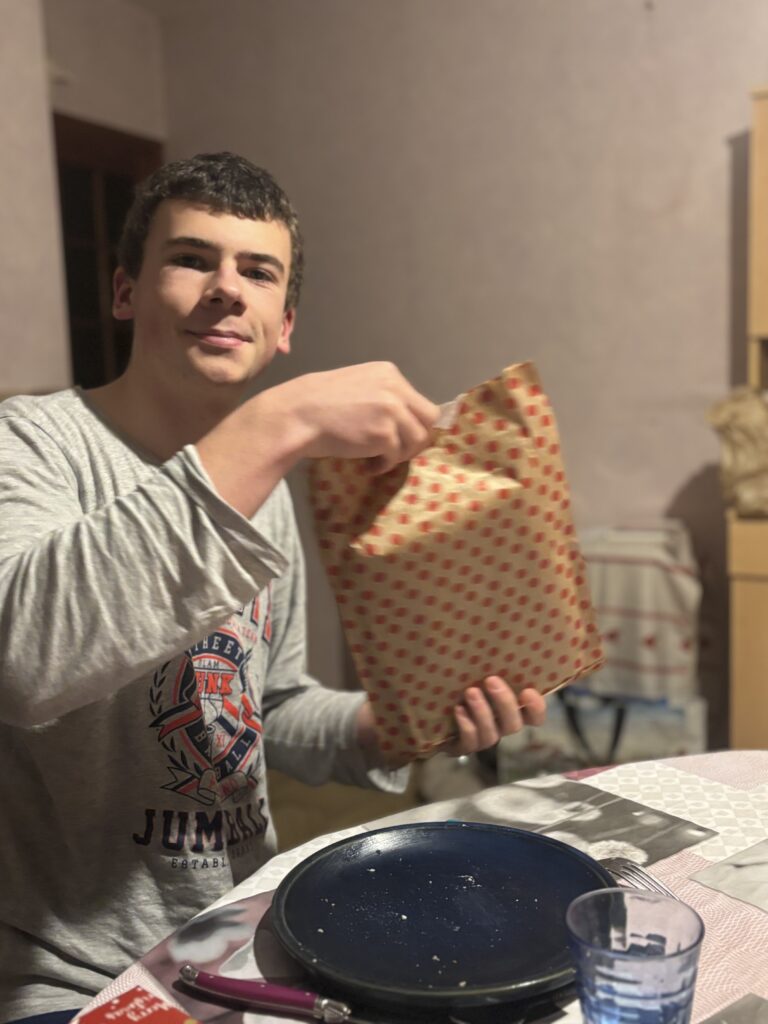 La journée a débuté à minuit pile avec le chant « Joyeux anniversaire » entonné par ses copains de la paroisse dans le bus qui faisait le trajet retour depuis Montbéliard. Puis, il y a eu un dodo et nous avons étalé la distribution des cadeaux tout au long de la journée.