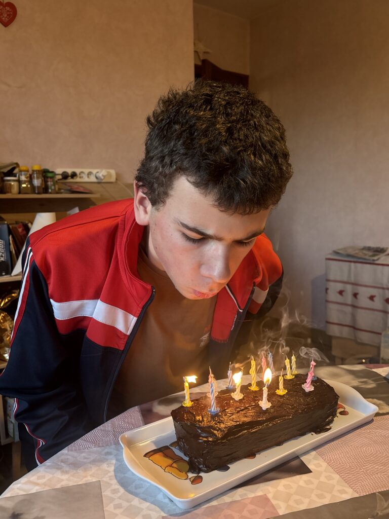 Dimanche, nous étions tous les quatre réunis et avons pu fêter le quatorzième anniversaire de notre Nathanaël.