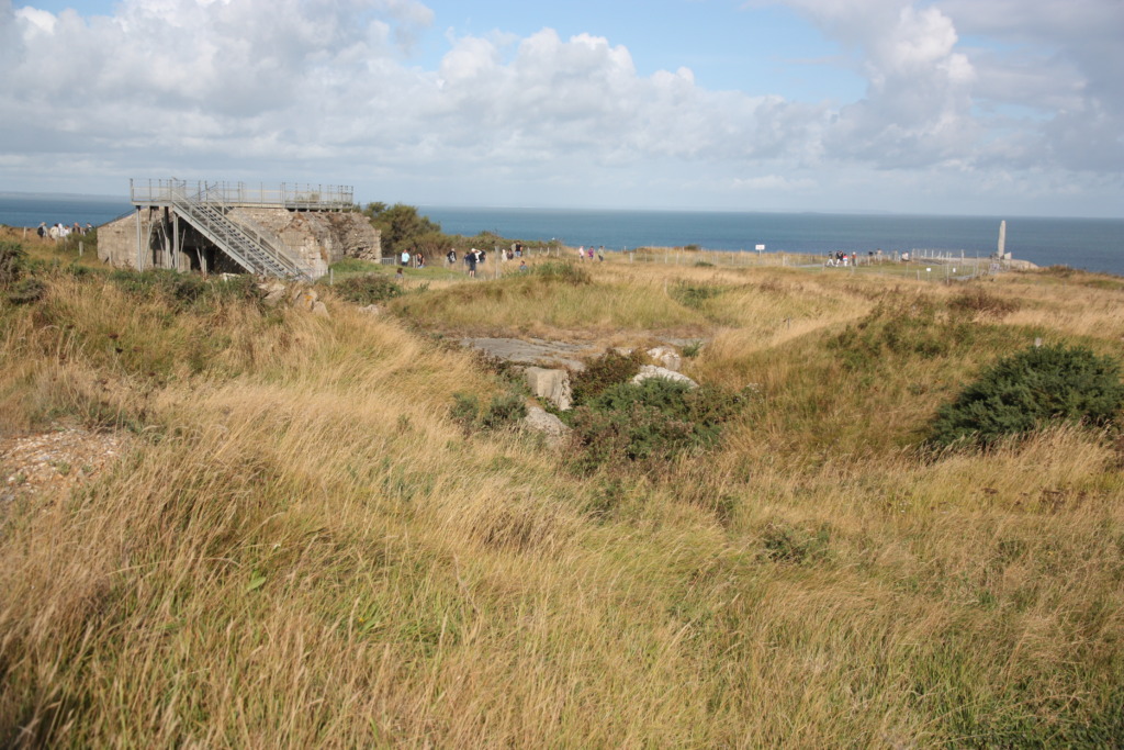 Nous voilà donc à la Pointe du Hoc, où l’on découvre la batterie d’artillerie, des abris, des trous d’obus.