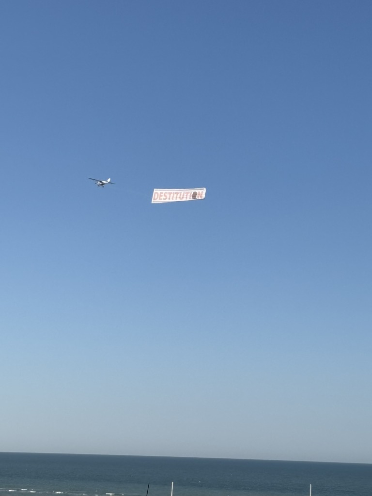 Cimetière britannique Pour être franche, on ne sait pas ce que c’est. Petit bonus : alors que nous profitions de la la terrasse, un avion est passé avec un message.
