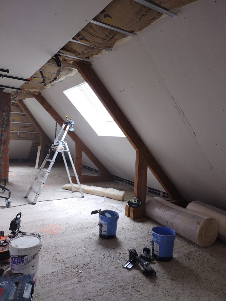 La pose du placo a commencé mardi et se poursuivra jusqu’aux vacances de Noël, puis pose des cloisons jusqu’à la mi-Janvier.