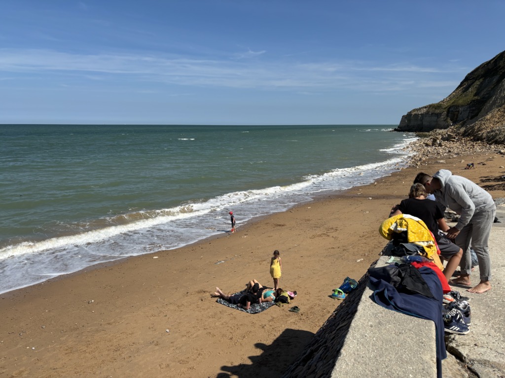 Mi-séjour, il faut penser à faire une lessive. C’est marée haute, il fait beau, on est en vacances à la mer : baignade !