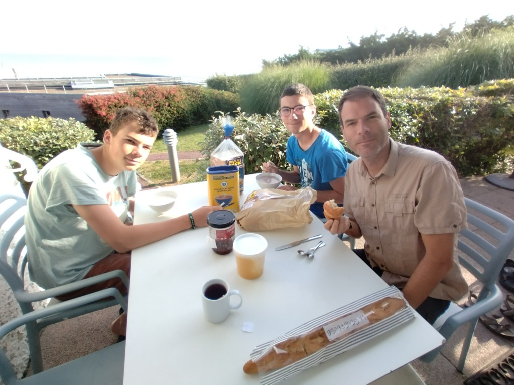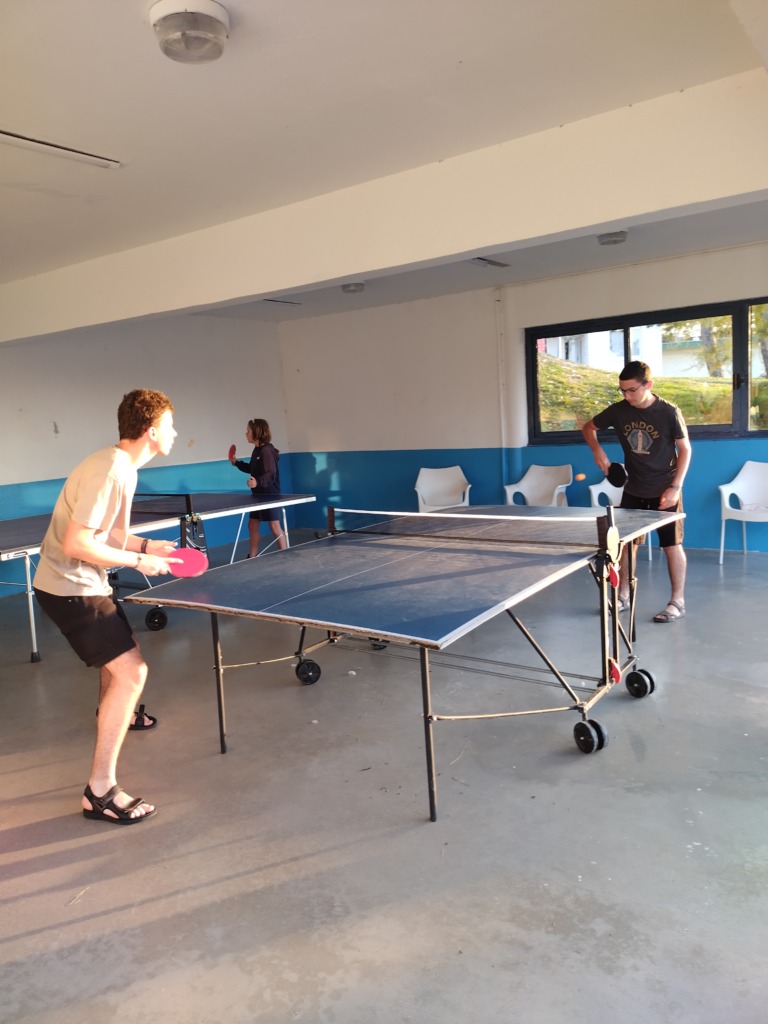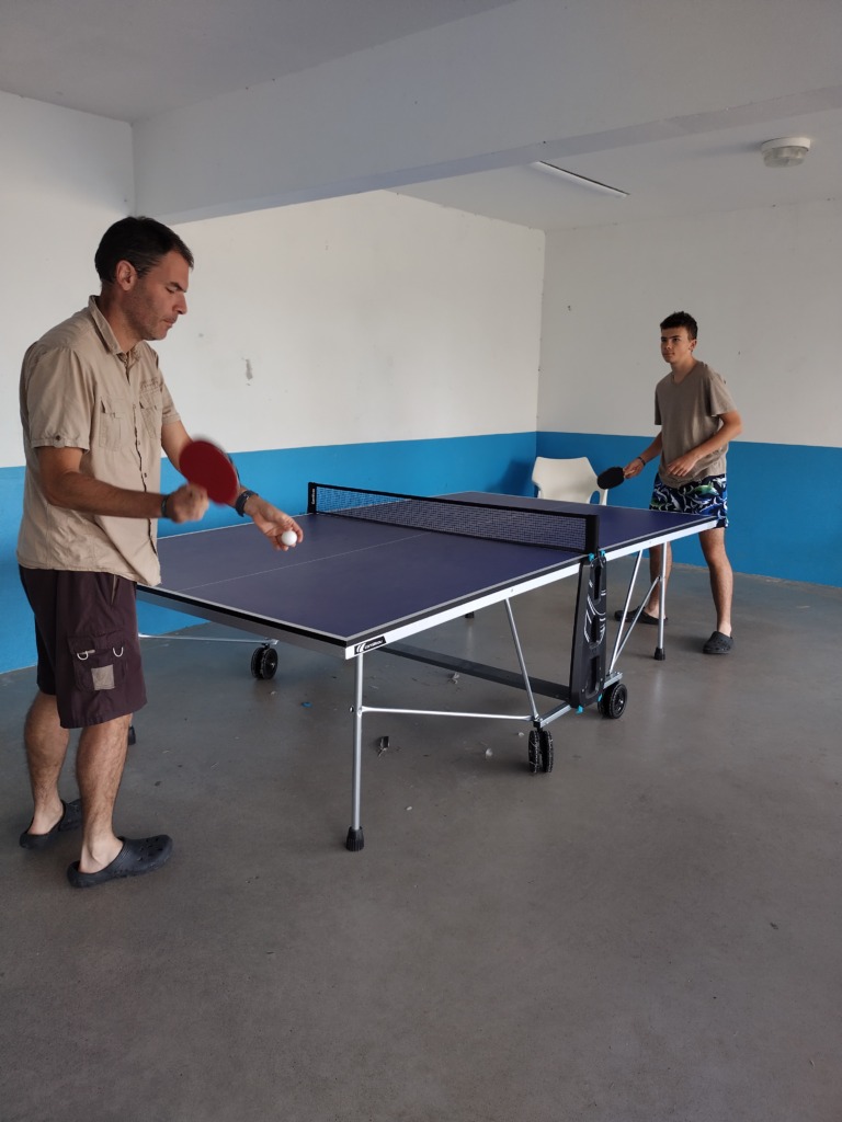 L’après-midi, chacun fait ce qu’il veut. Course à pied pour les parents mais avec un itinéraire différent chacun, ping-pong et château de sable.